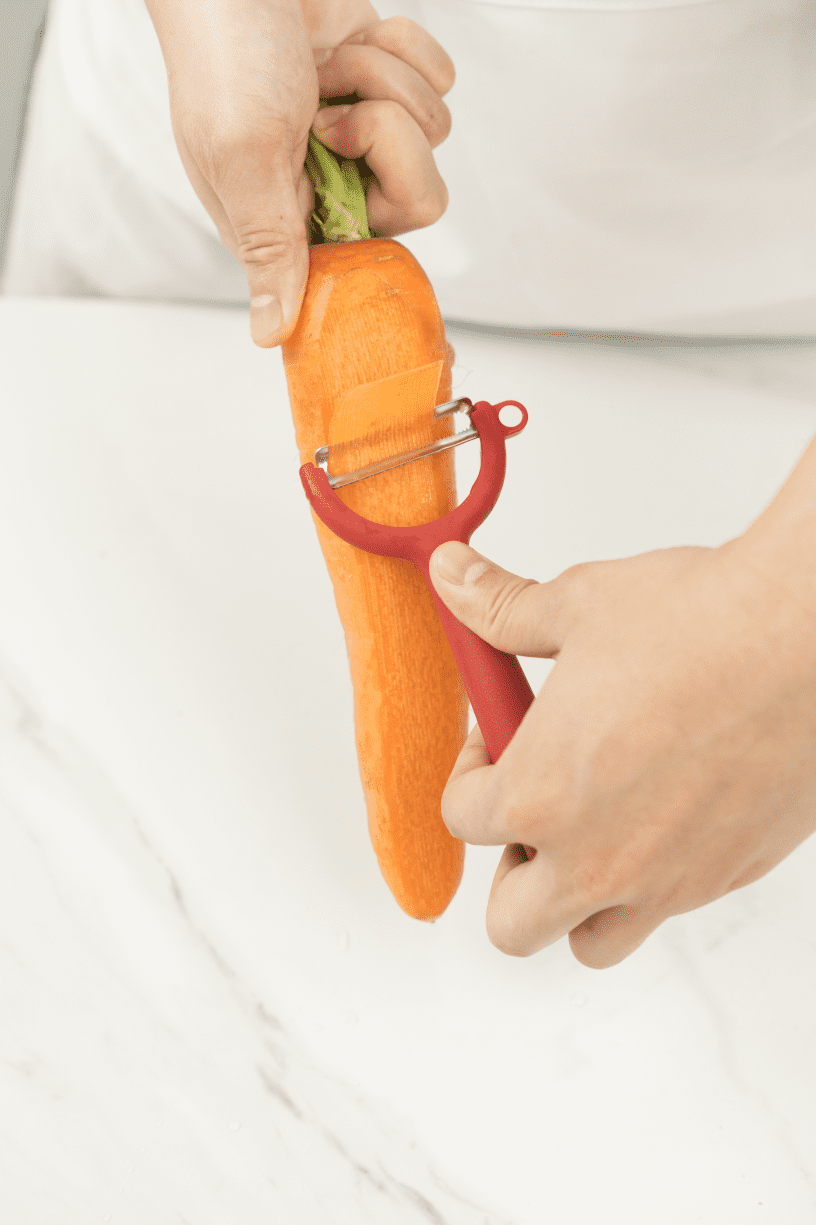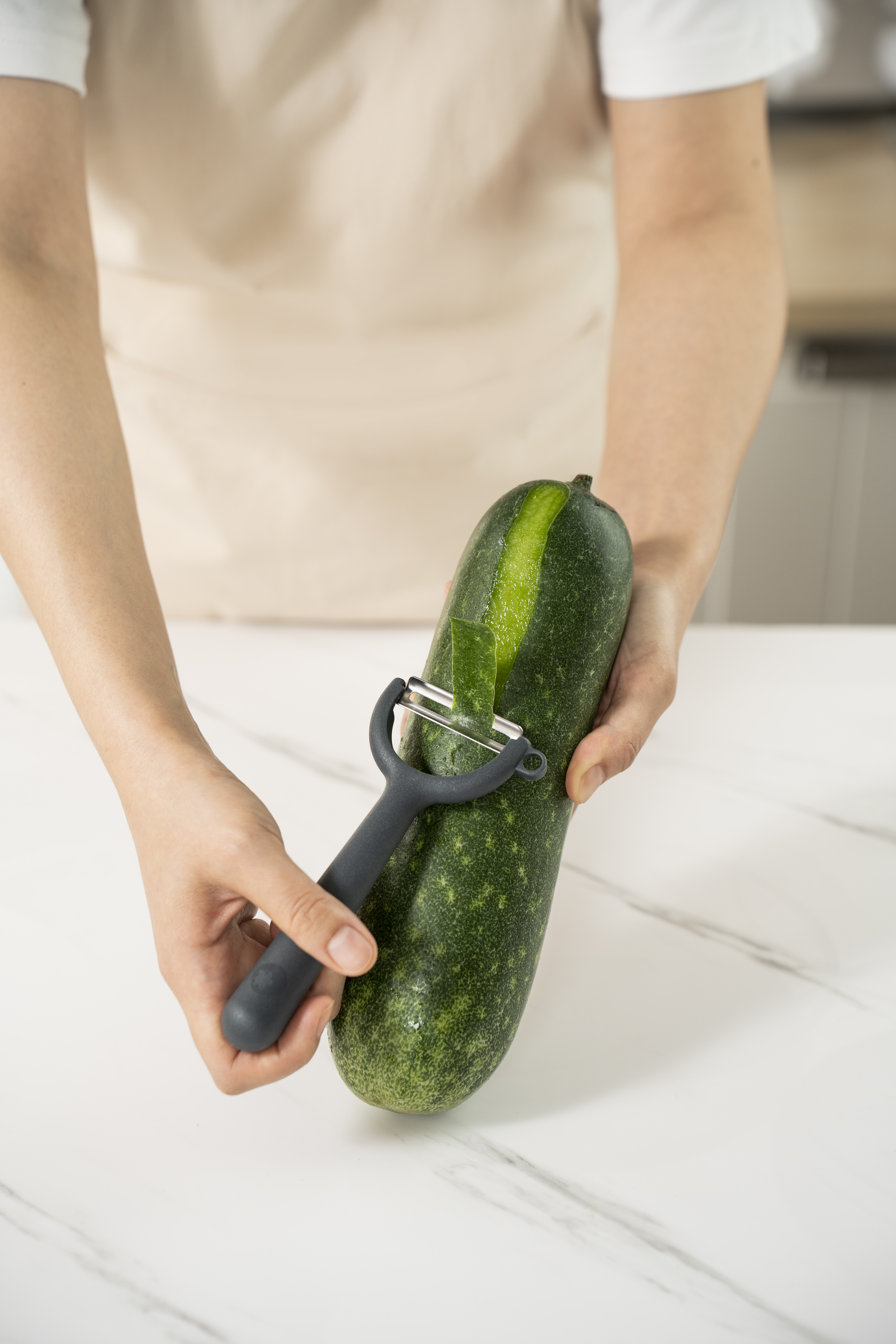A nagyon éles rozsdamentes acél pengék gyerekjátékká teszik a gyümölcsök és zöldségek héjának eltávolítását