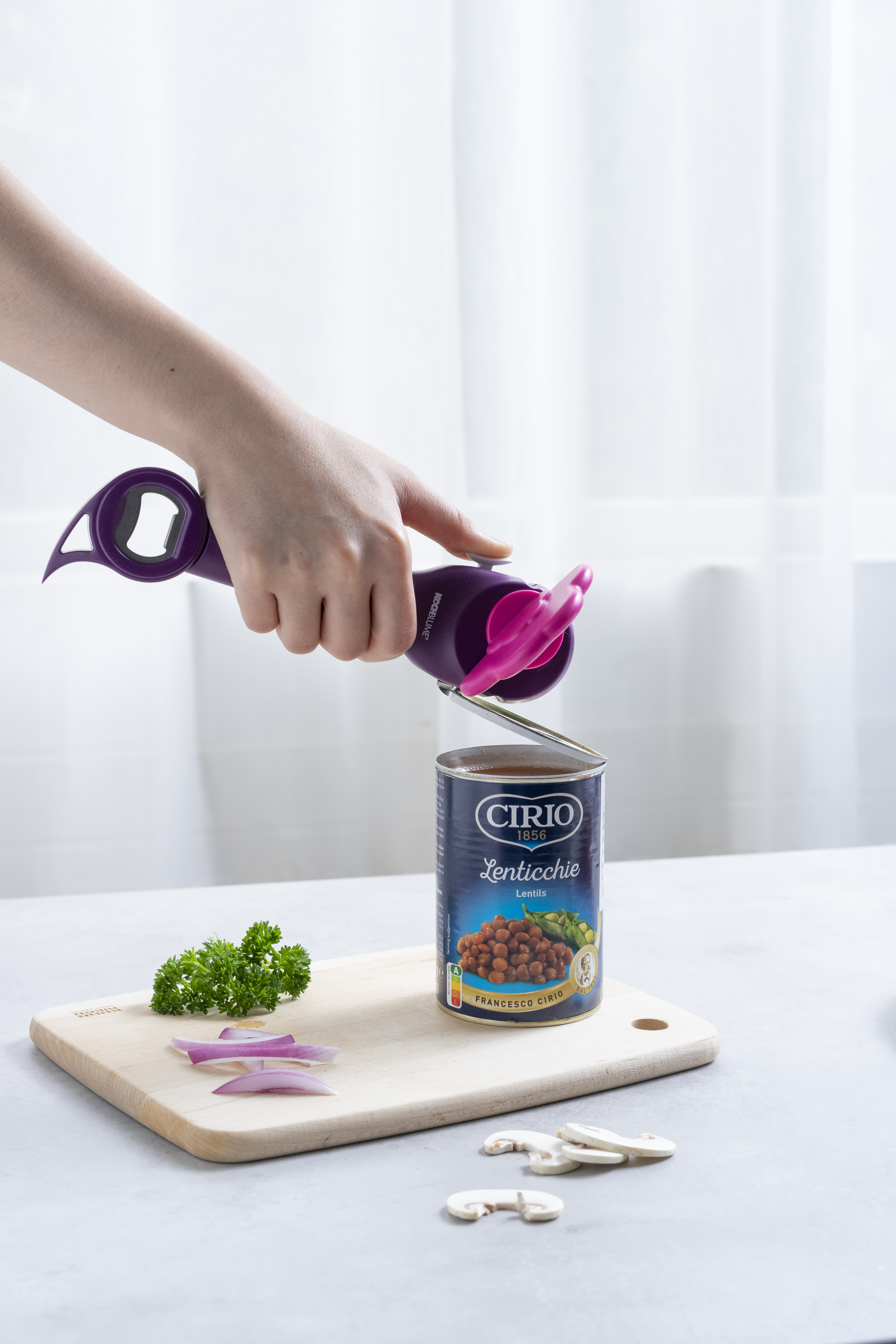 5 funkció egyben: alkalmas konzervek, befőttesüvegek, csavaros kupakok, üvegek és húzókás dobozok nyitására.