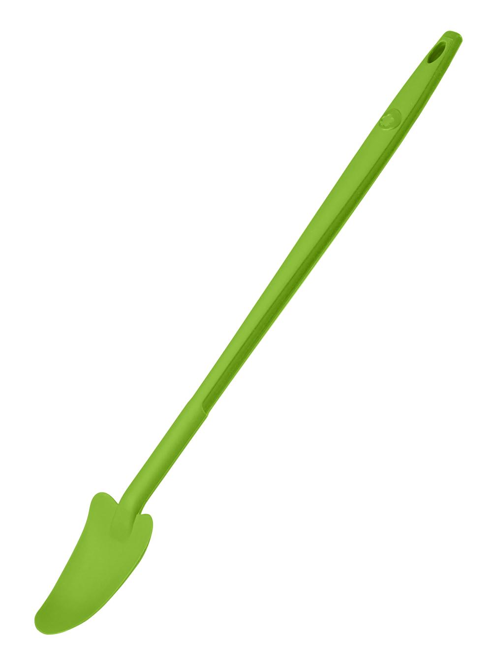 A hosszú nyél kényelmes használatot biztosít magas edényeknél, mérőpoharaknál vagy turmixgépeknél is.