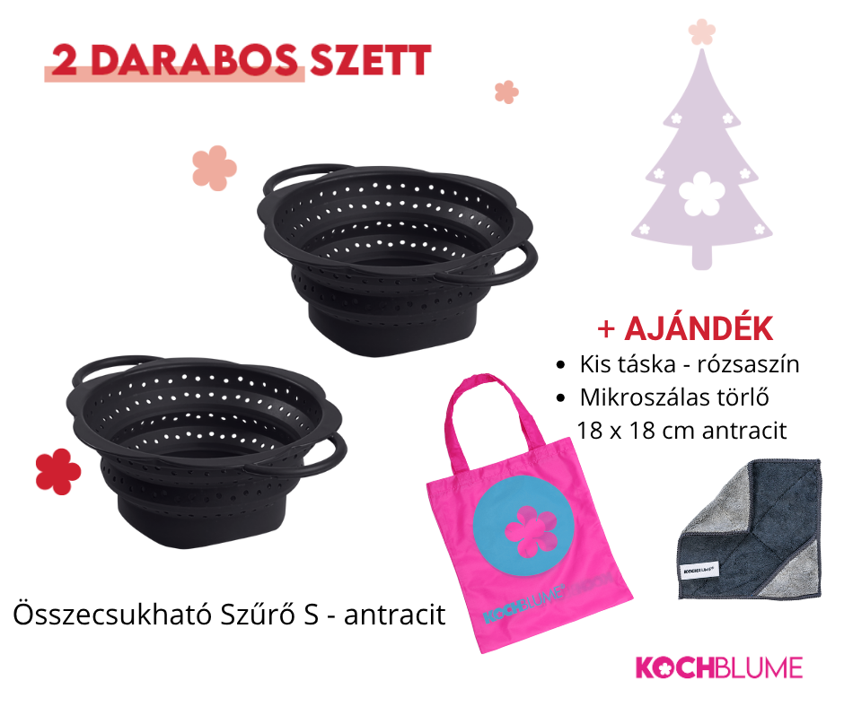 A 2 db antracit összecsukható Szűrő S nem csak helytakarékos és könnyen használható, de modern, letisztult megjelenésével minden konyhában jól mutat.