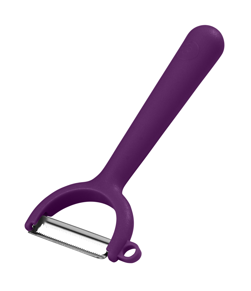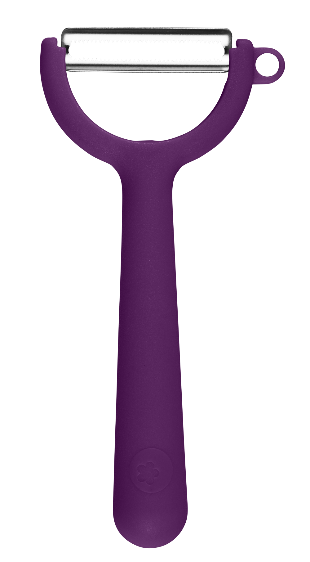 Az érdesített nyélnek köszönhetően a hámozó szilárdan és biztonságosan ül a kézben, még nedves ujjakkal is.