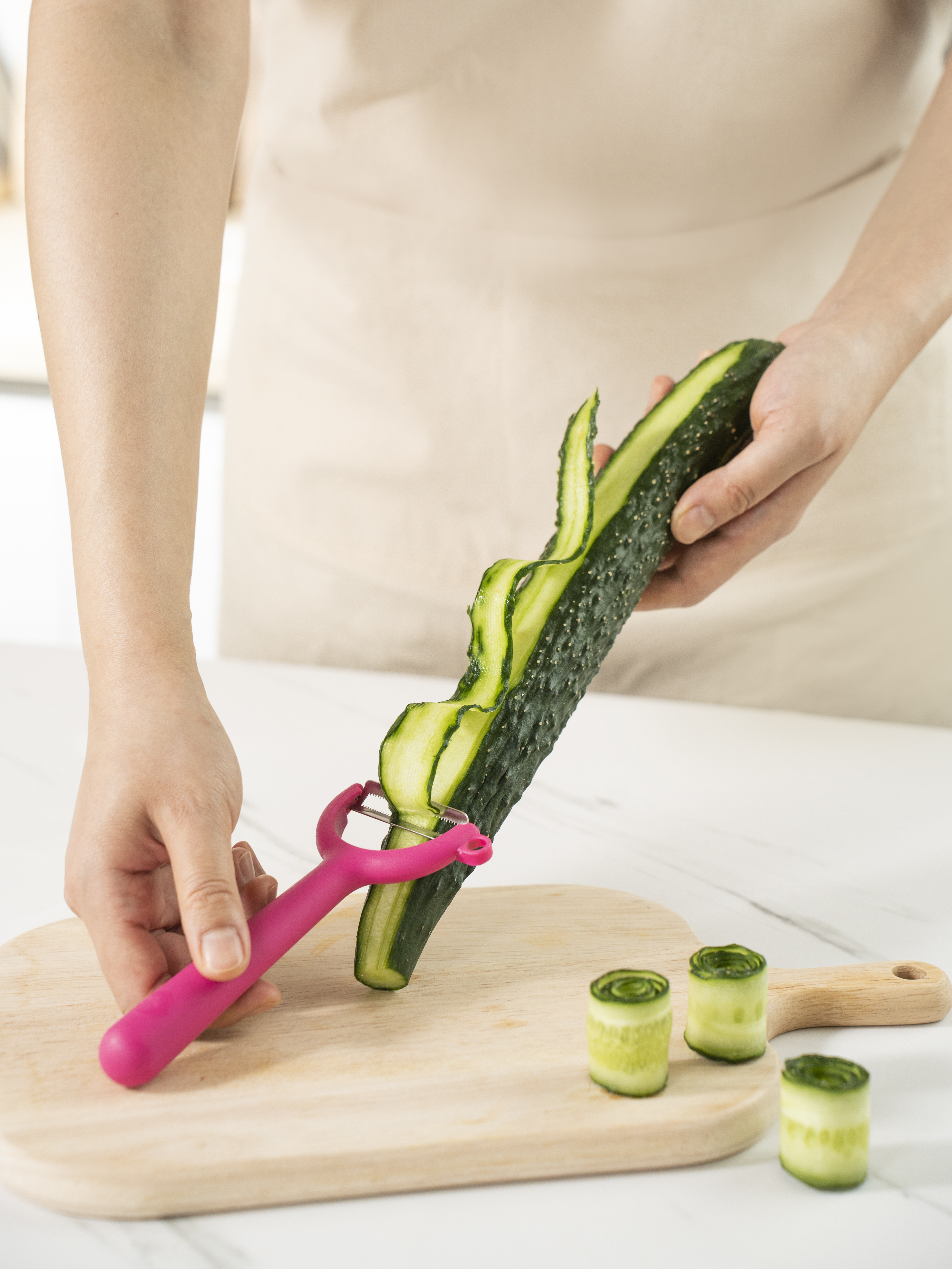 A nagyon éles rozsdamentes acél pengék gyerekjátékká teszik a gyümölcsök és zöldségek héjának eltávolítását