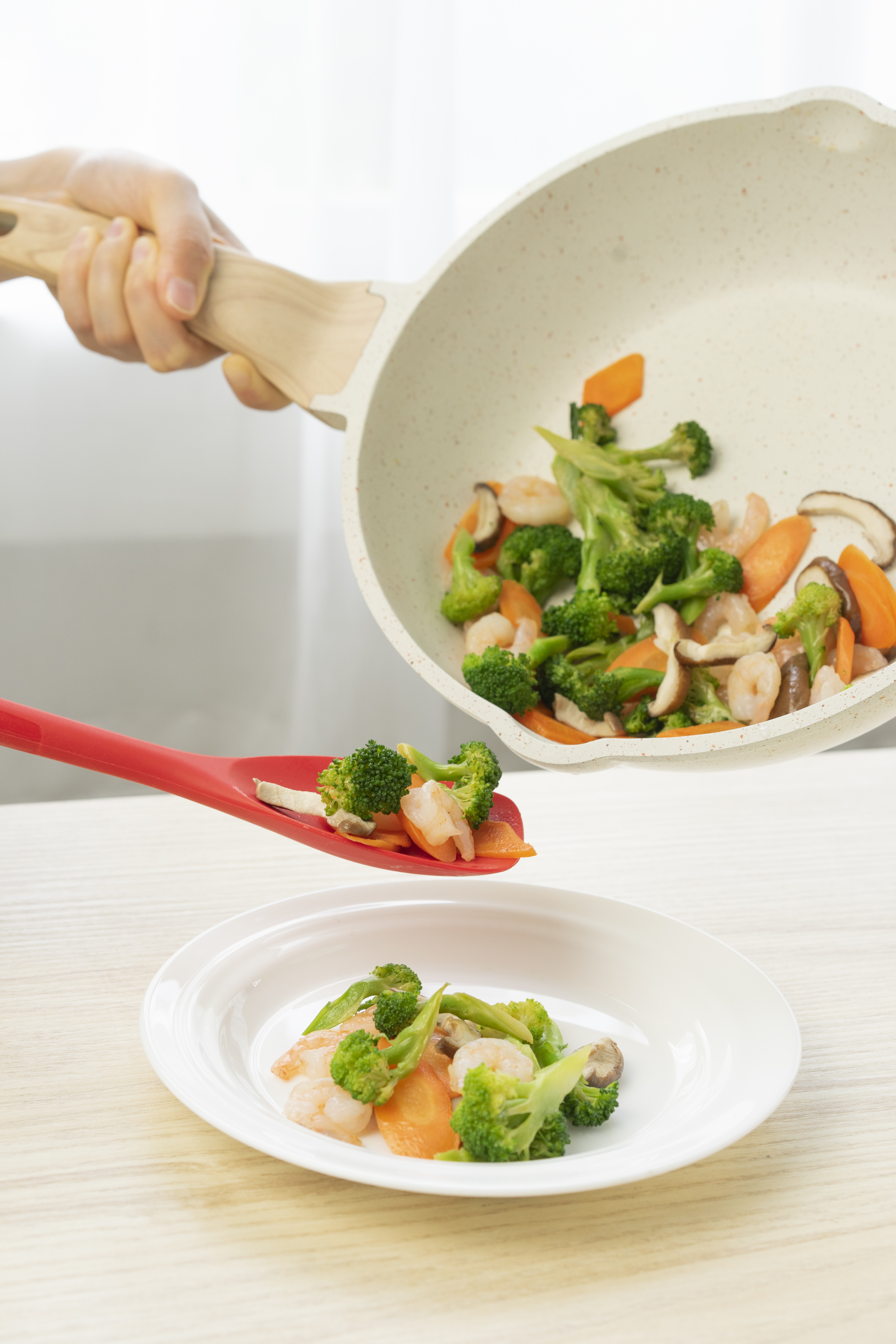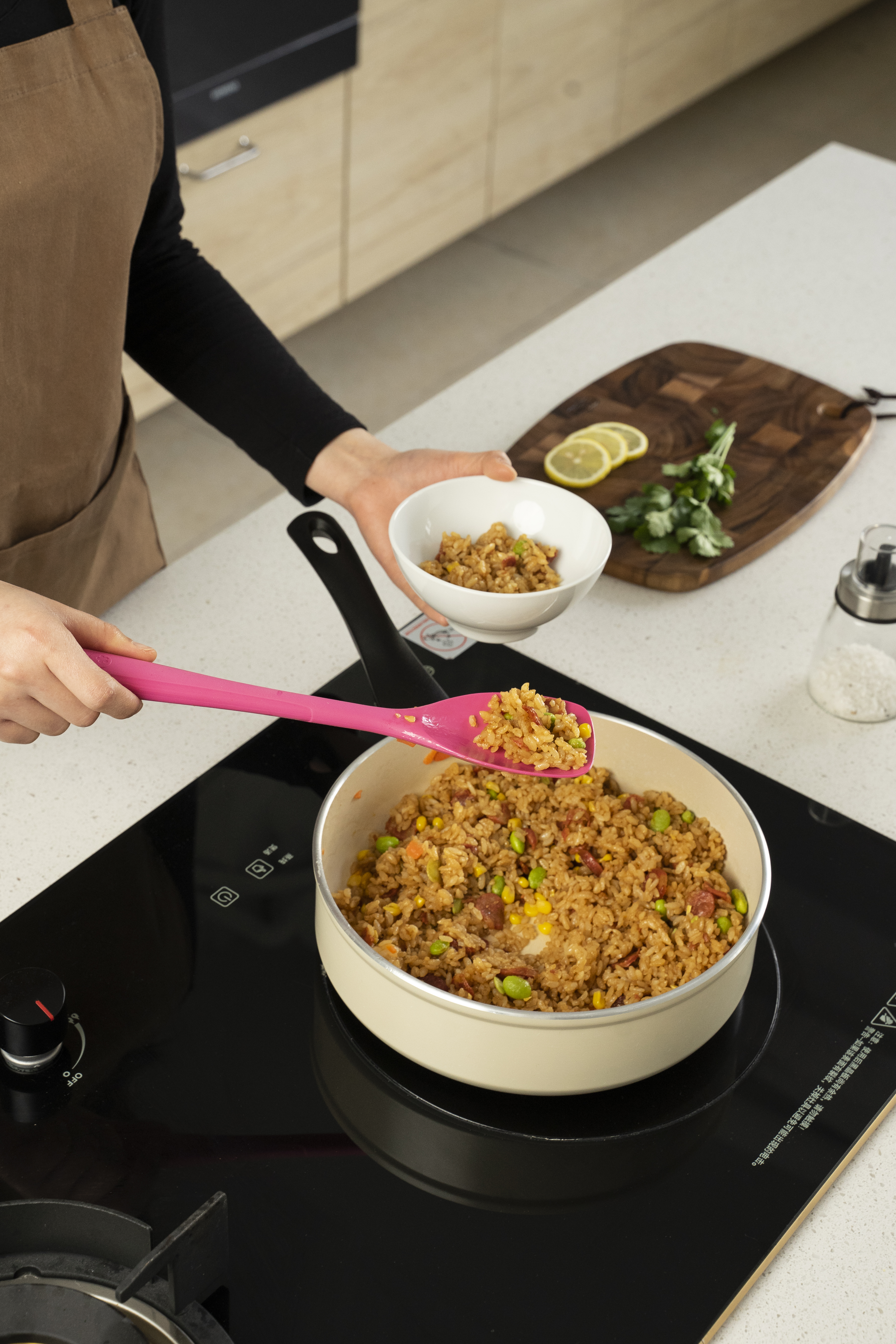 Ez a sokoldalú konyhai segítőtárs több, mint egy egyszerű kanál. Rugalmas szilikon széleinek és lapos formájának köszönhetően ideális hagyma és zöldség pirításához, szószok keveréséhez, sőt tésztakaparóként is tökéletesen beválik. Legyen szó wokételekről, szószokról vagy sütés közbeni apró mozdulatokról – a Flexi Kanál nélkülözhetetlen darab minden konyhában!