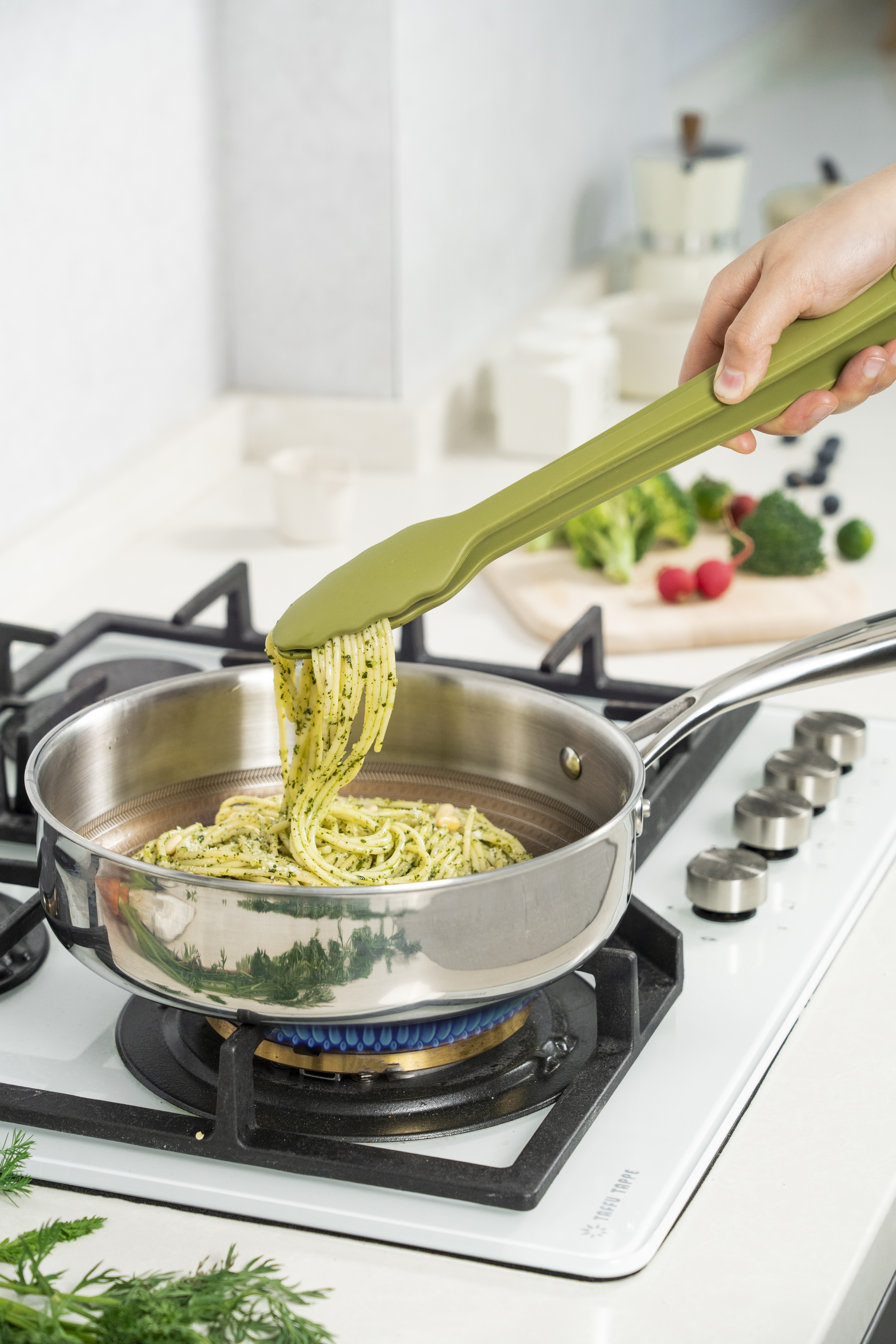 A tömör rozsdamentes acél mag gondoskodik a stabilitásról és hosszú élettartamról, míg a puha, élelmiszerbiztonságos szilikon bevonat védi az edényeidet a karcolódástól. Ráadásul 260°C-ig hőálló, így bátran használhatod a grillen, serpenyőben vagy akár forró tálalásnál is – anélkül, hogy a nyele felforrósodna.
