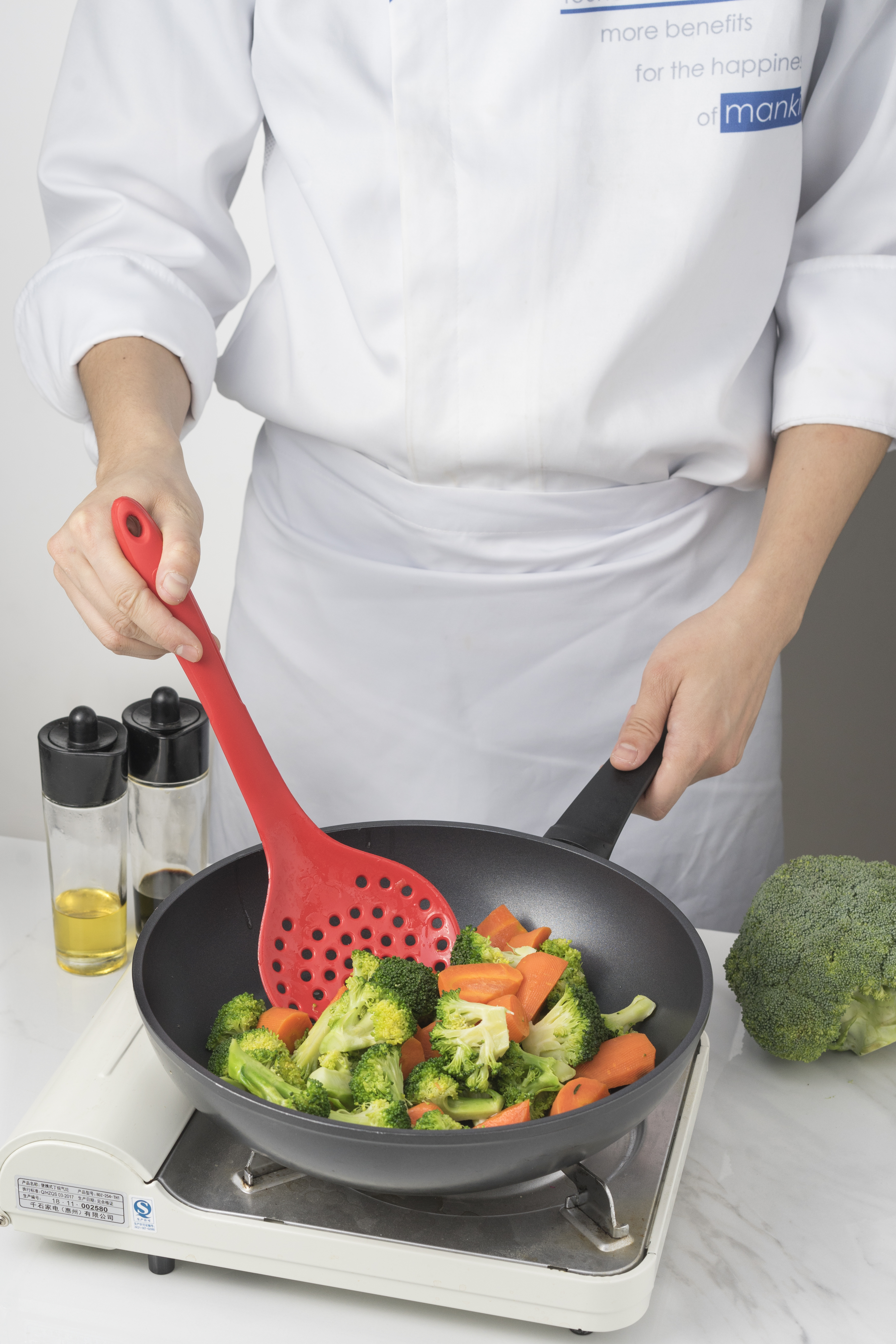 A rozsdamentes acél mag gondoskodik a tartósságról, a BPA-mentes szilikon bevonat pedig kíméli az edényeidet – nem karcol, nem olvad, és 260 °C-ig hőálló.