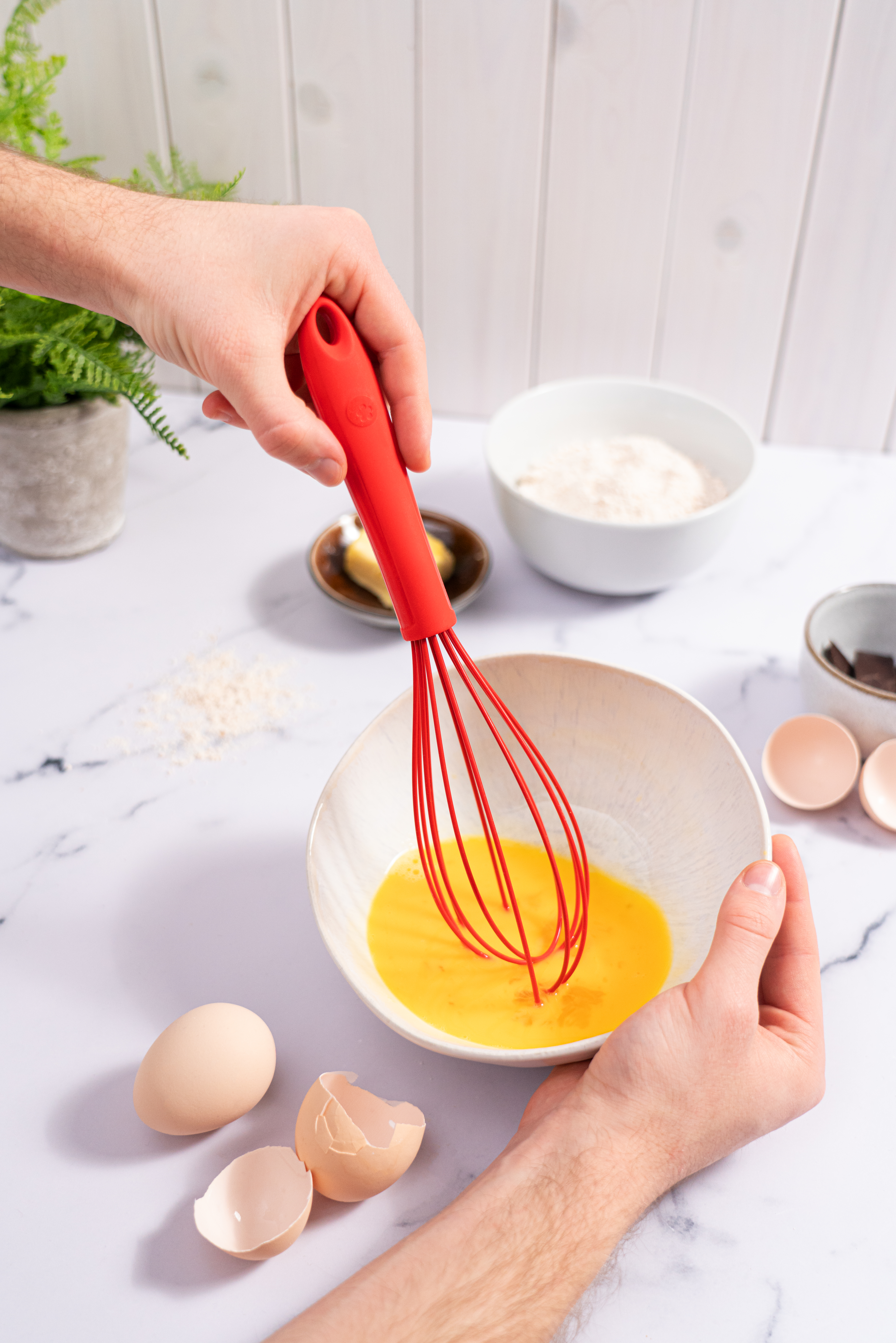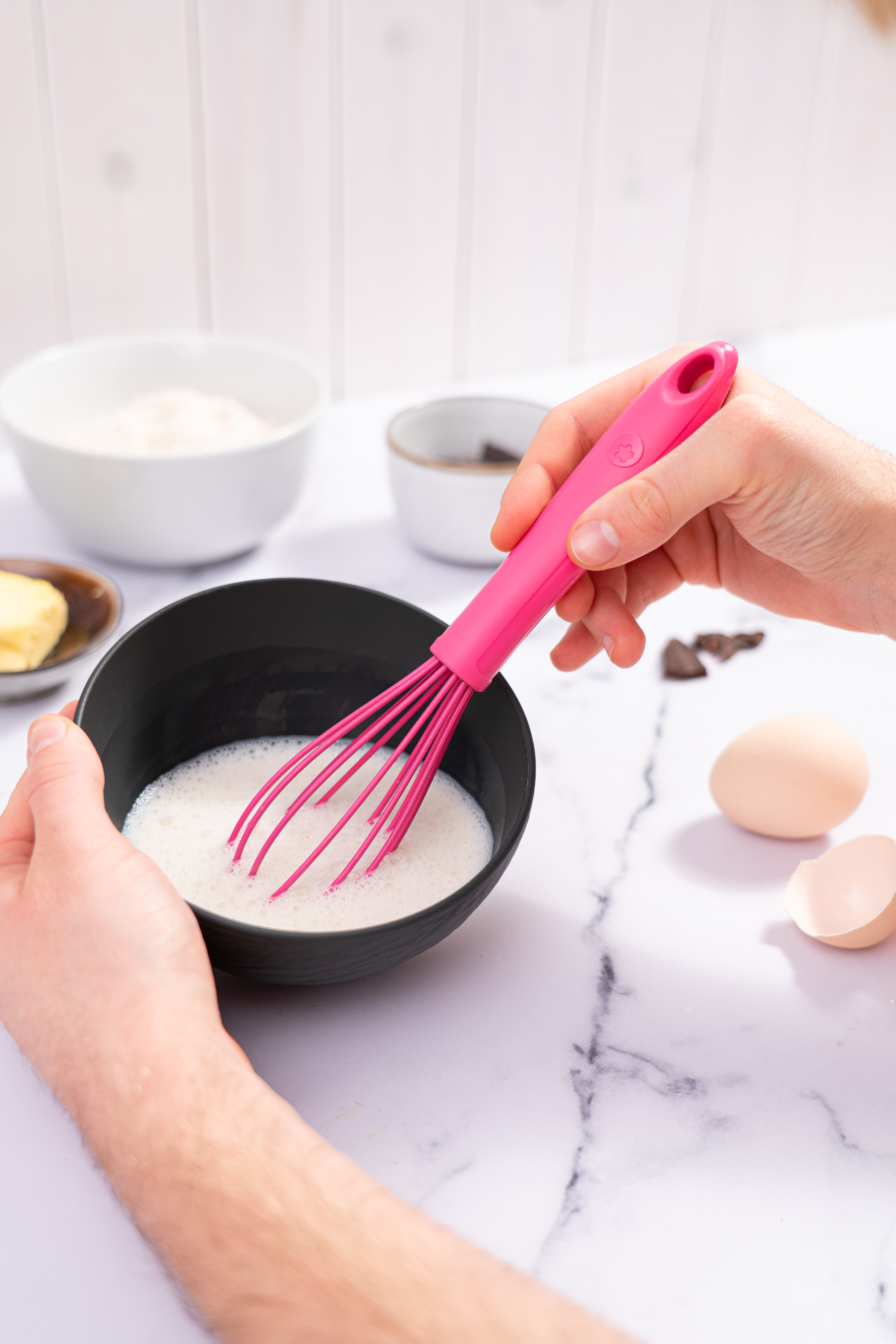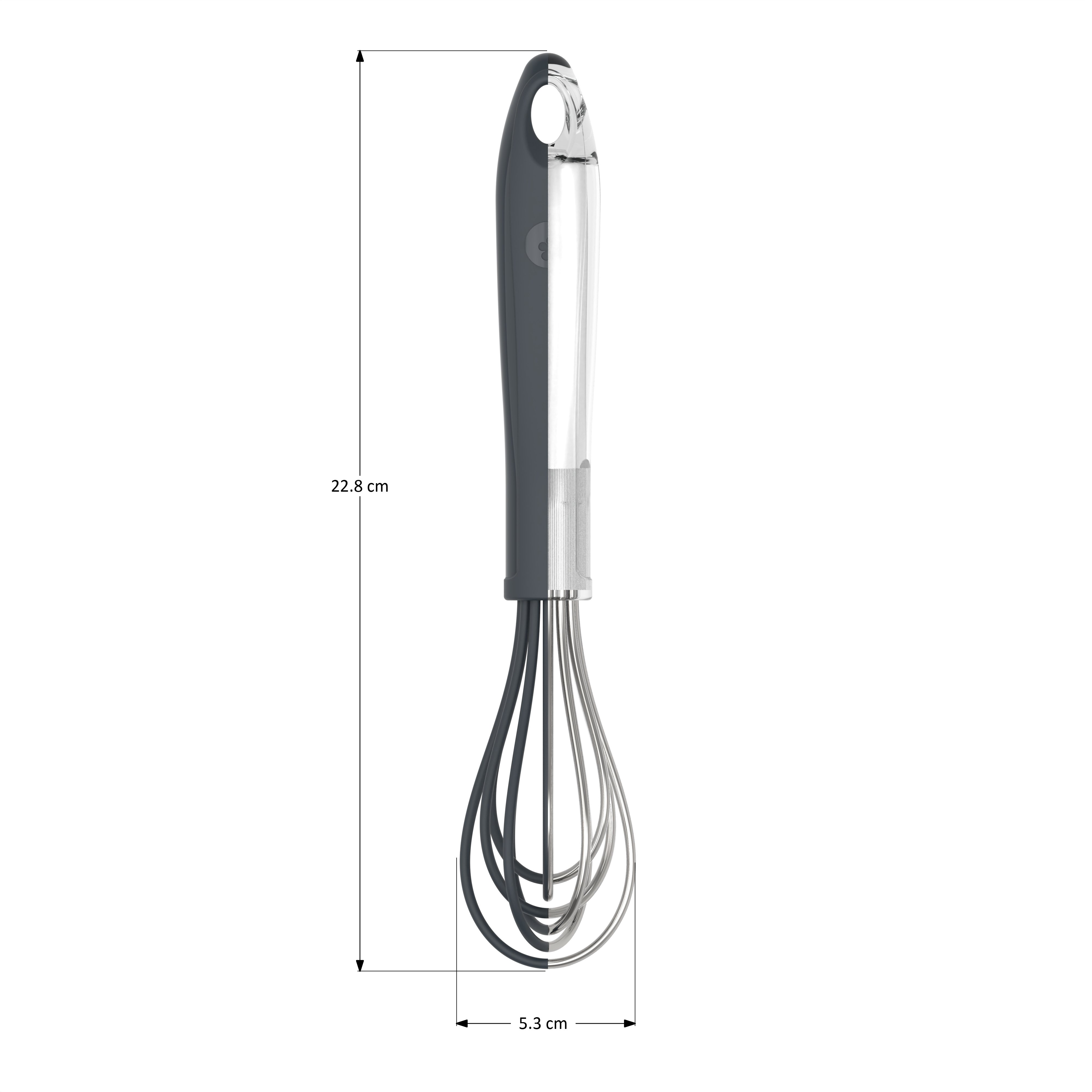tömör rozsdamentes acél mag stabilitást és tartósságot ad, míg a rugalmas, szilikon bevonat megóvja az edényeid felületét a karcolásoktól. Ergonomikus kialakítása miatt kényelmesen illik a kezedbe, és segít, hogy könnyedén dolgozz a konyhában – akár reggeli rohanásban, akár sütés-főzés közben.