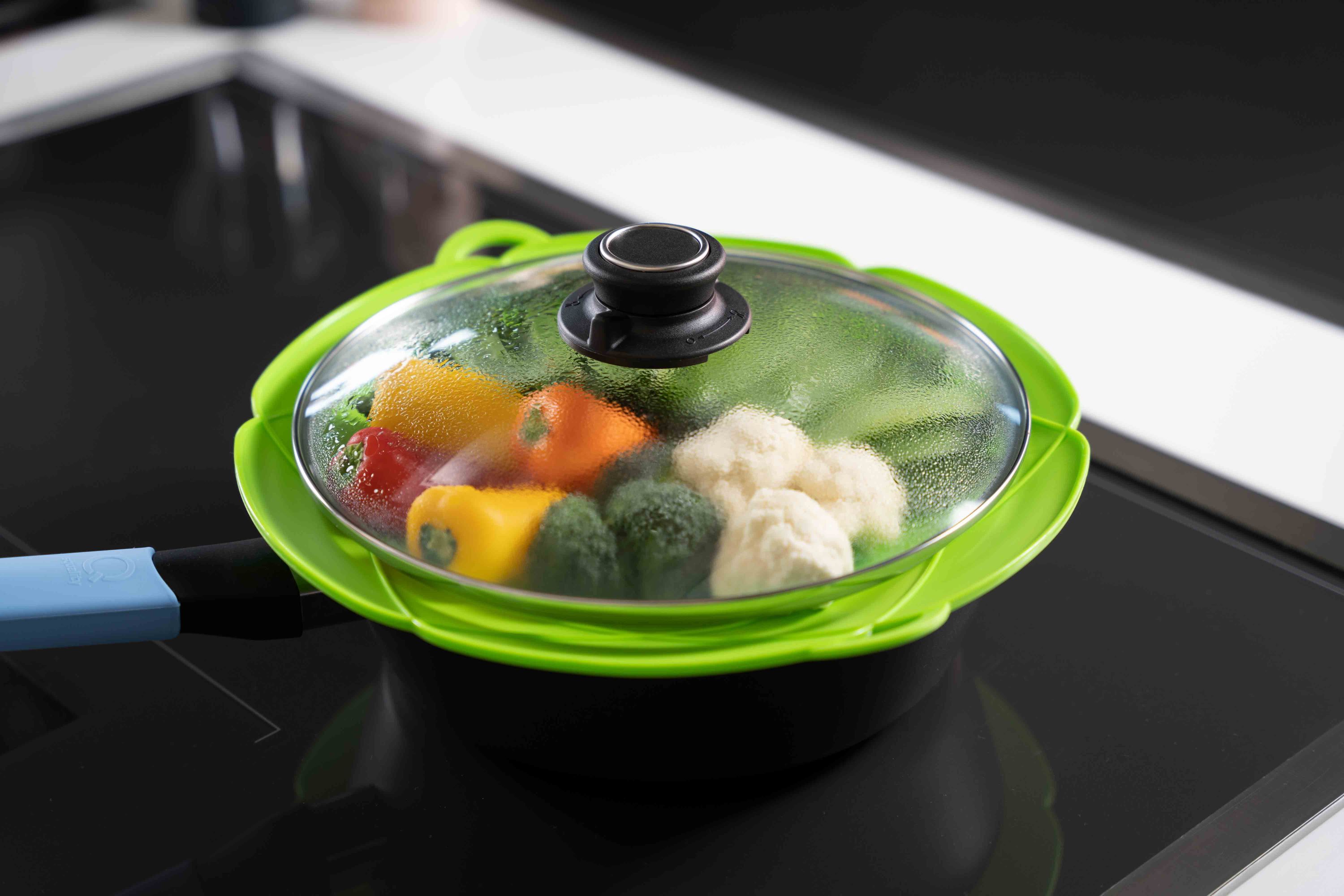 Egyszerűen helyezd a fazékra, és hagyd, hogy tegye a dolgát: a rugalmas szilikonvirág megakadályozza, hogy a víz kifusson, miközben a hab finoman visszacsorog az edénybe. Te pedig közben foglalkozhatsz mással – vagy csak hátra dőlhetsz egy pillanatra.