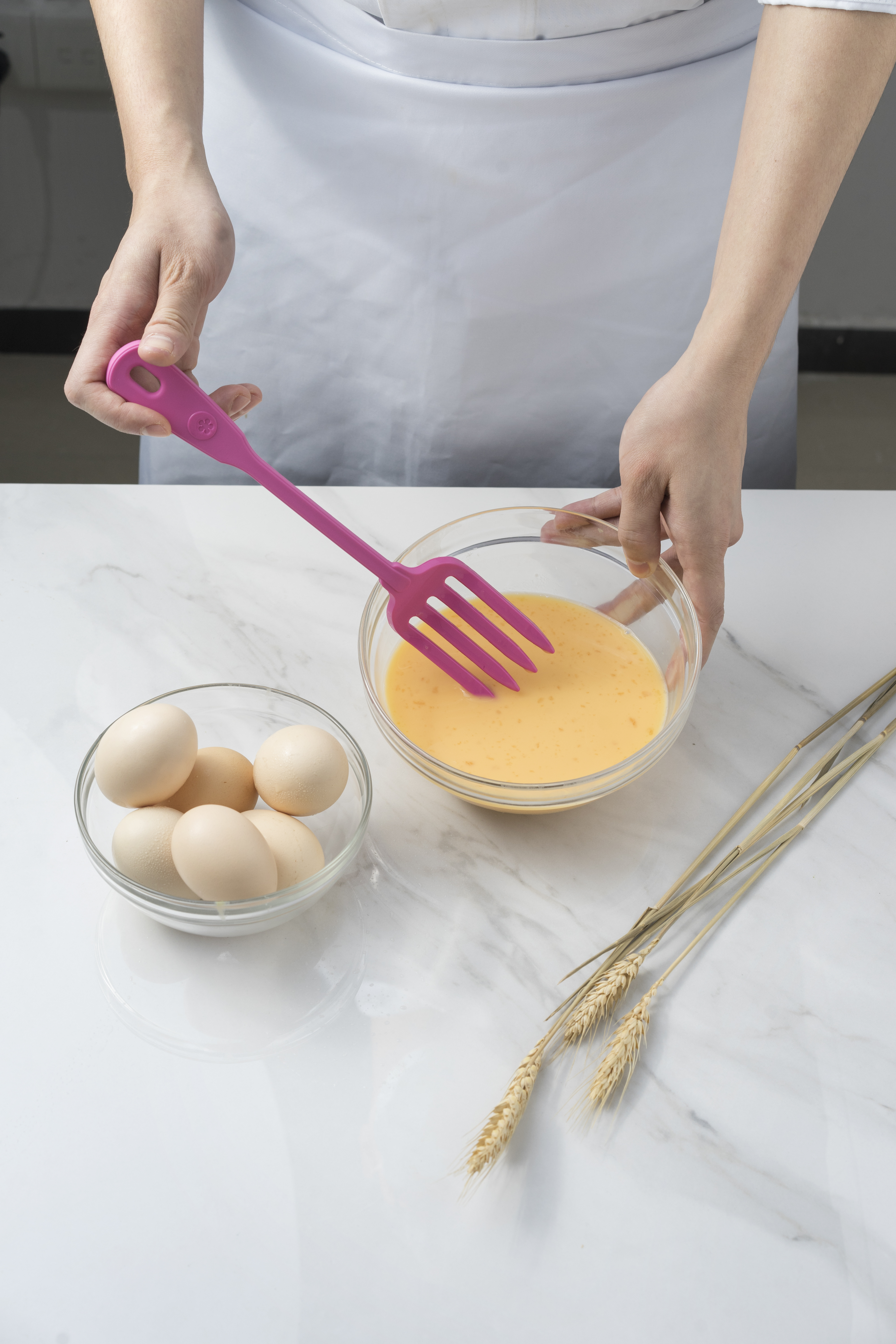 Ez a konyhai villa élelmiszeripari minőségű szilikonból készült és BPA-mentes, így mindenféle élelmiszerrel biztonságosan érintkezhet. 260°C-ig hőálló is, így forró környezetben, például grillezéskor vagy főzéshez is használható anélkül, hogy a szerkezete károsodna vagy megolvadna. Az integrált rozsdamentes acél mag további stabilitást és tartósságot biztosít a villának, ami különösen hasznos nehéz vagy forró ételek kezelésekor.