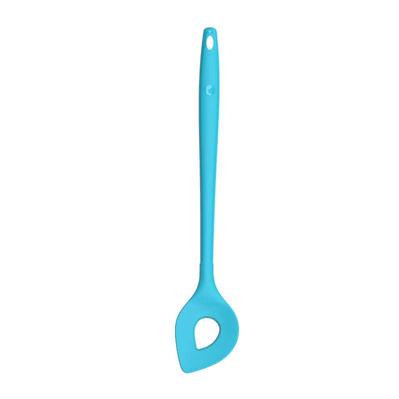 A rugalmas szilikonhegyével könnyedén eloszlathatod a tésztát a sütőformában, a kanál nyílásának köszönhetően pedig csomómentesen keverheted a leveseket és szószokat – az eredmény mindig tökéletesen egyenletes lesz.