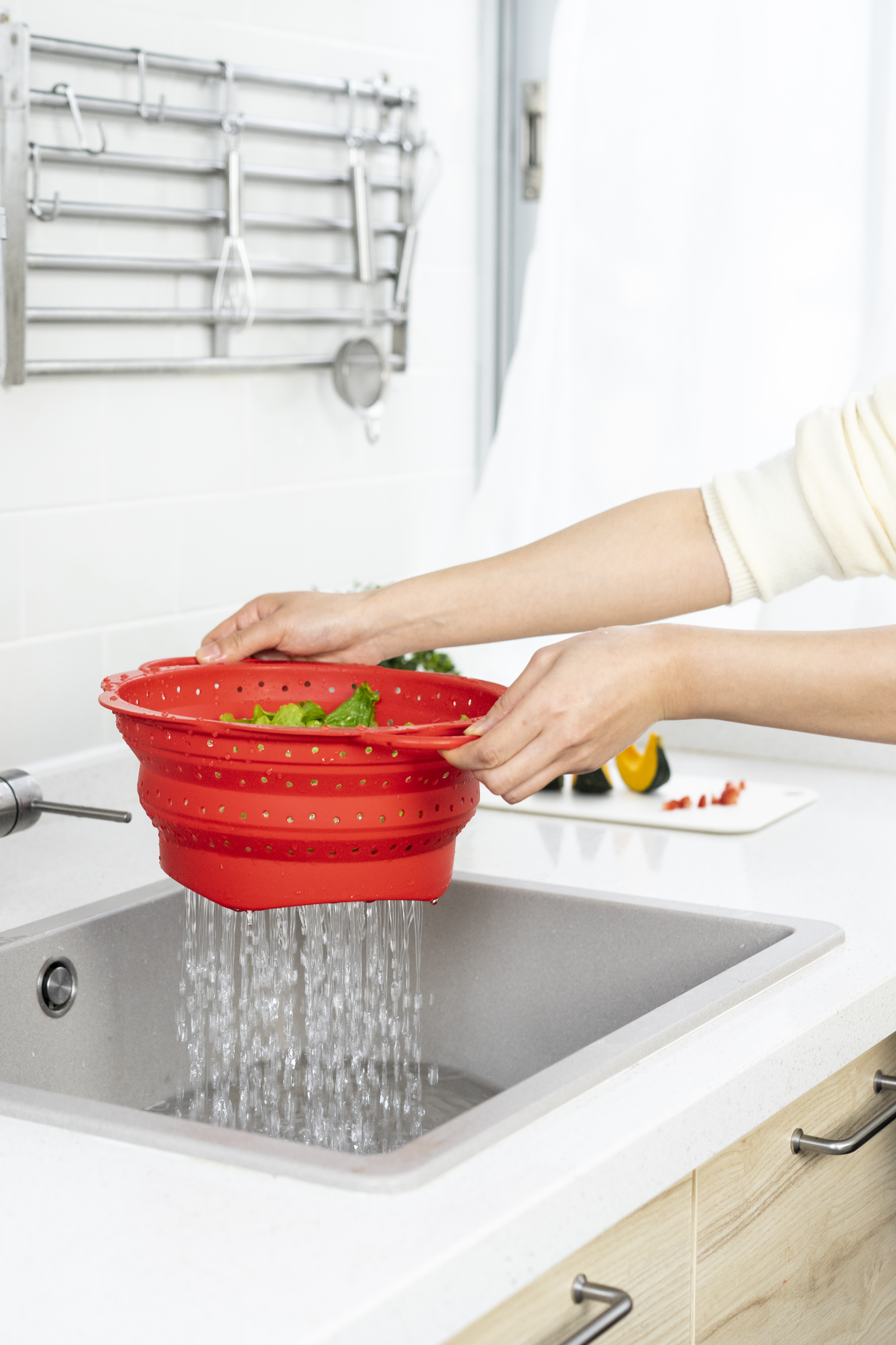 Az összecsukható szűrő helytakarékos, higiénikus és sokoldalú segítőtárs, amely rendezetté és hatékonyabbá teszi a konyhai munkát.