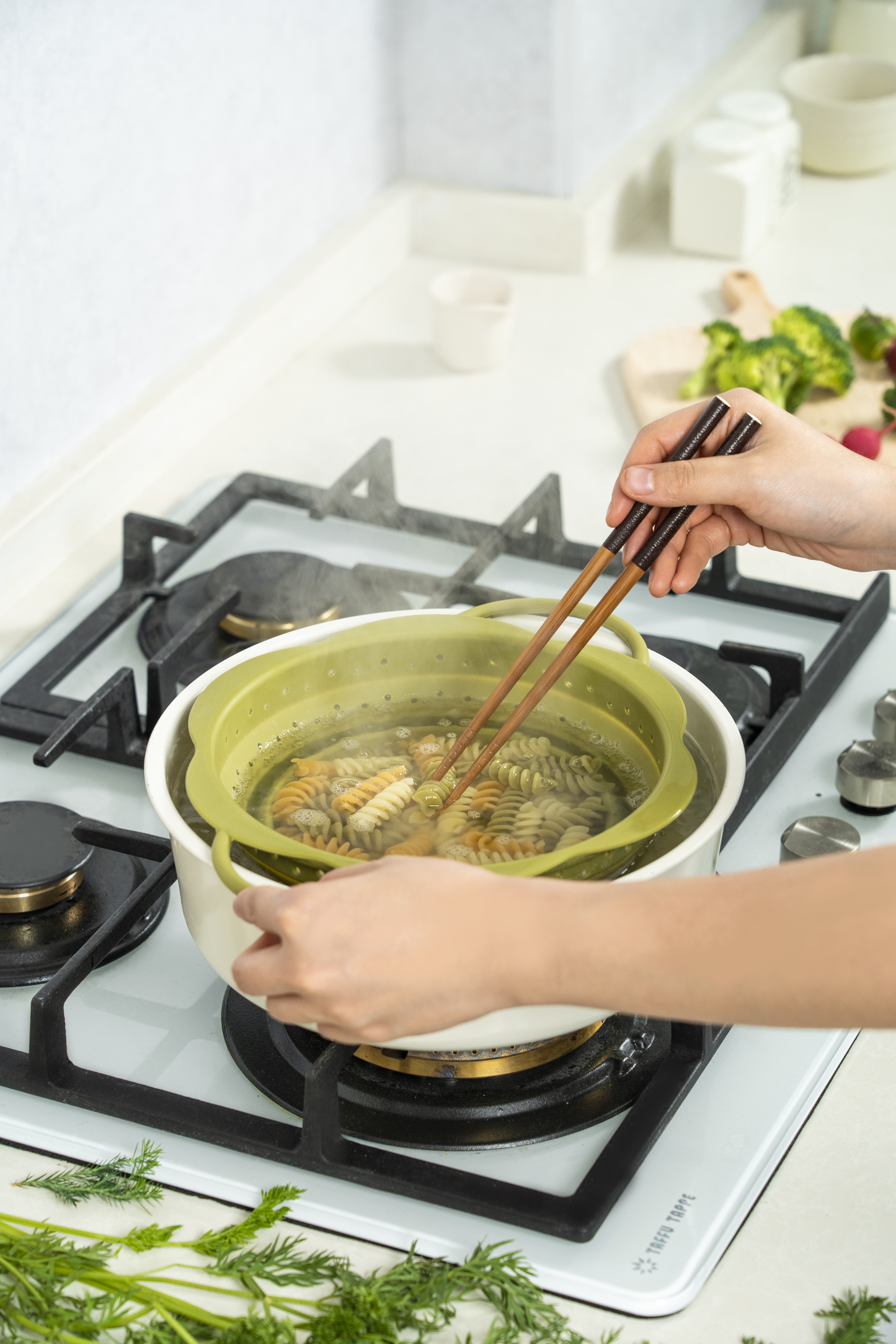 Az összecsukható szűrő innovatív, multifunkcionális konyhai eszköz, amely stílusos kialakításával helyet takarít meg, miközben megkönnyíti az ételkészítést. Használd tészta, zöldség vagy gyümölcs lecsöpögtetésére, illetve mosására – közvetlenül a fazékban vagy önállóan.