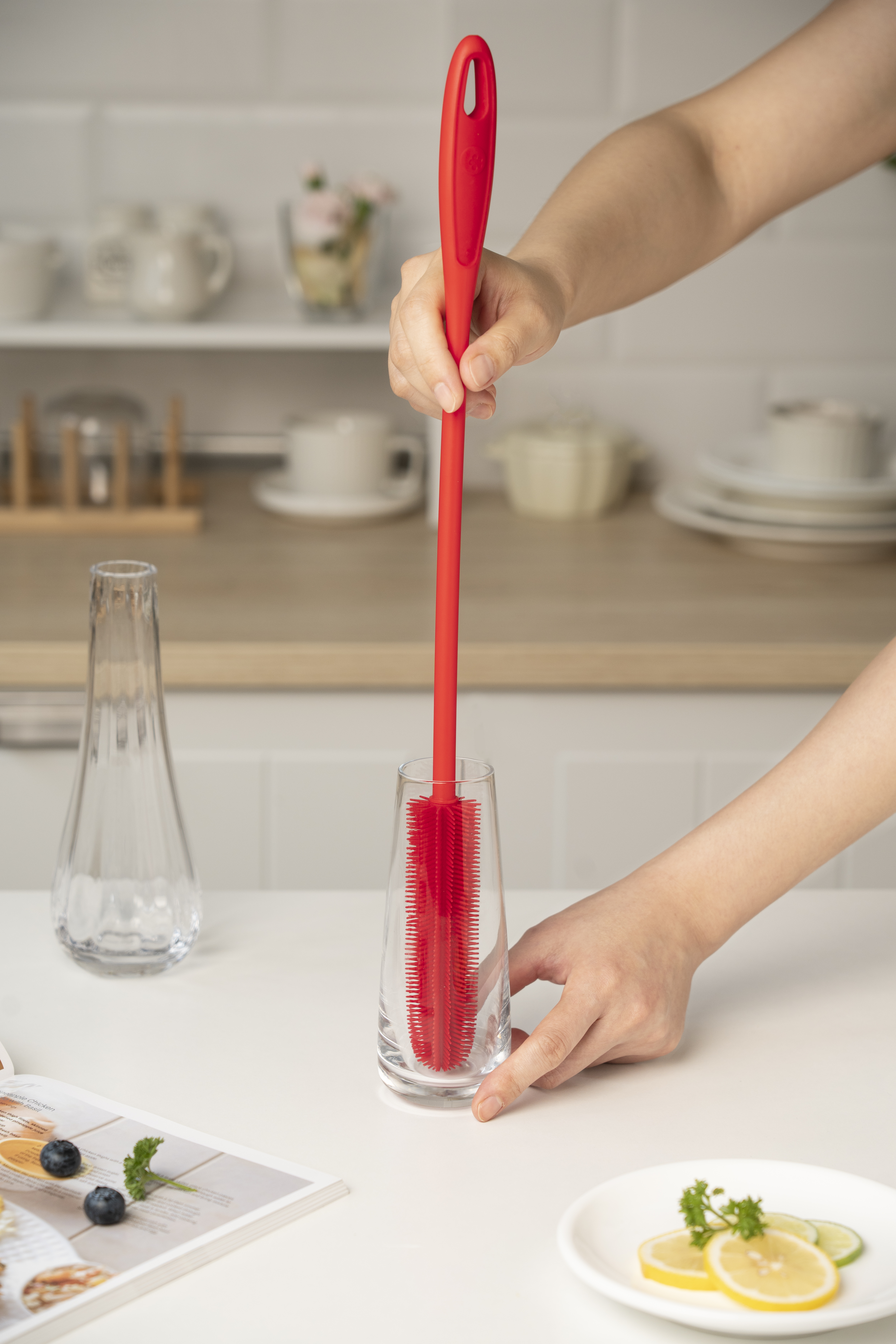 Rugalmas, levehető szilikonfej, BPA-mentes, hőálló akár 260°C-ig. Alkalmas palackok, poharak, kancsók és termoszok tisztítására. 36 cm hosszú, mosogatógépben mosható, cserélhető fejjel a tökéletes tisztításhoz.