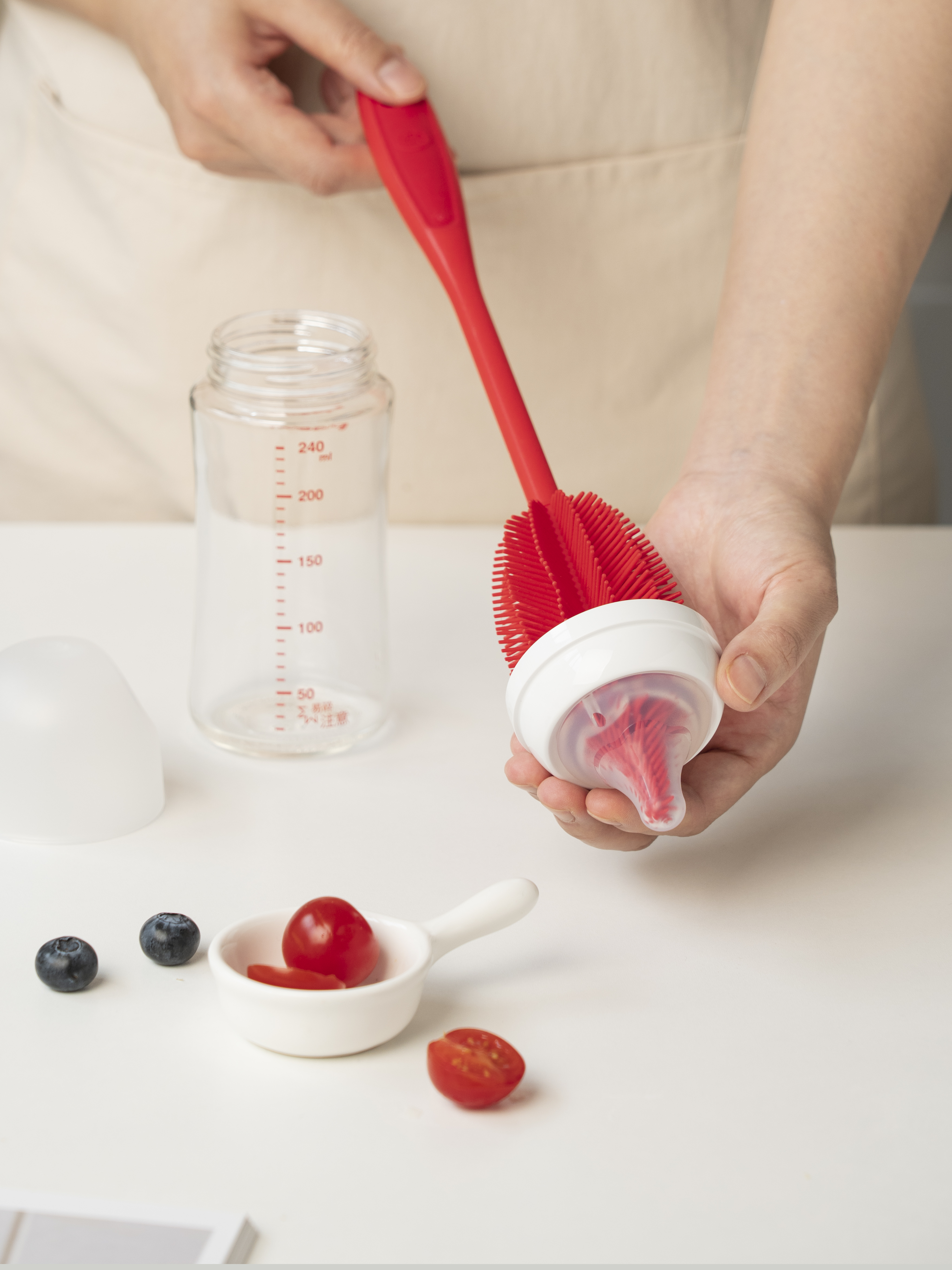 Rugalmas, levehető szilikonfej, BPA-mentes, hőálló akár 260°C-ig. Alkalmas palackok, poharak, kancsók és termoszok tisztítására. 36 cm hosszú, mosogatógépben mosható, cserélhető fejjel a tökéletes tisztításhoz.