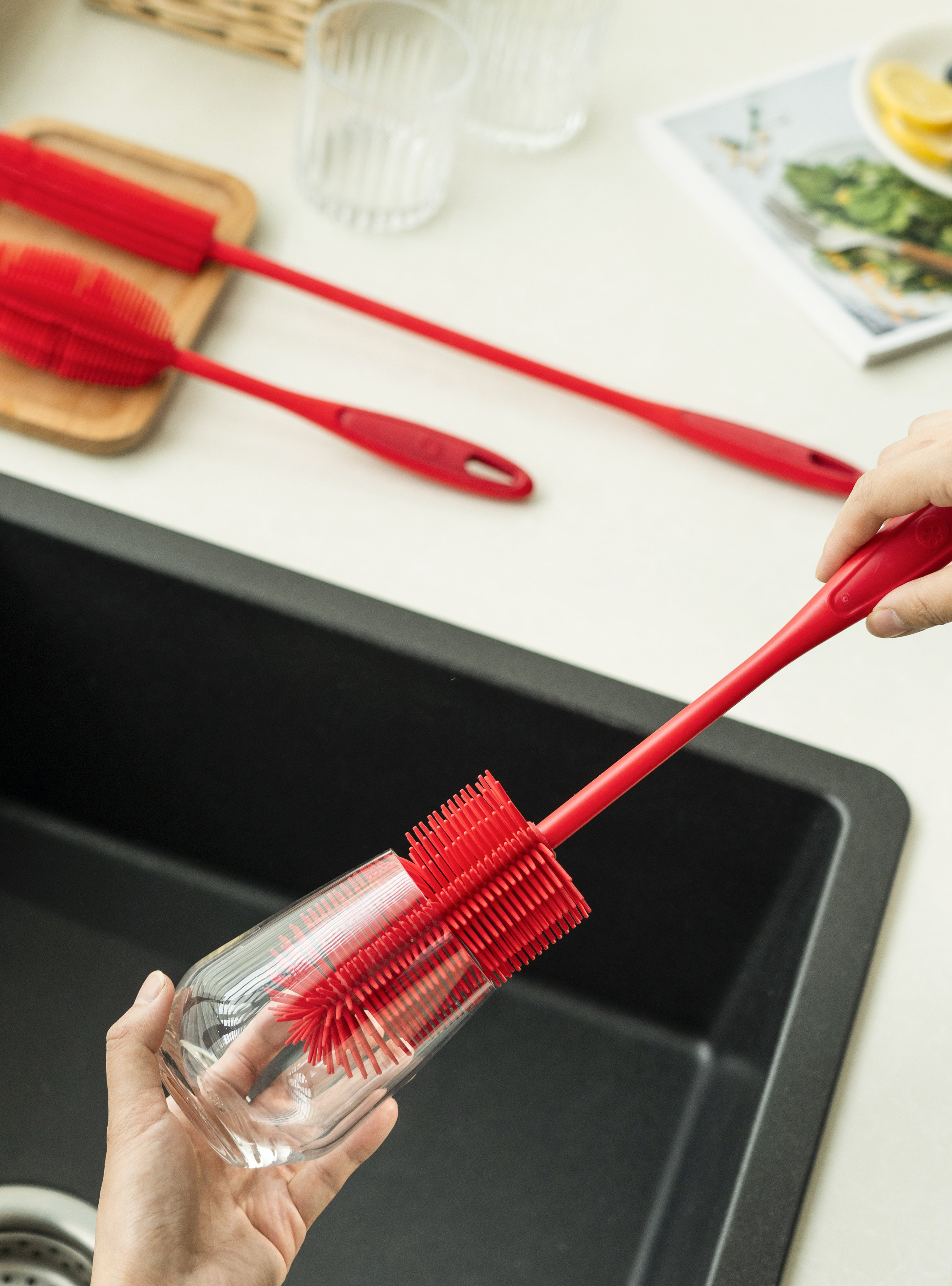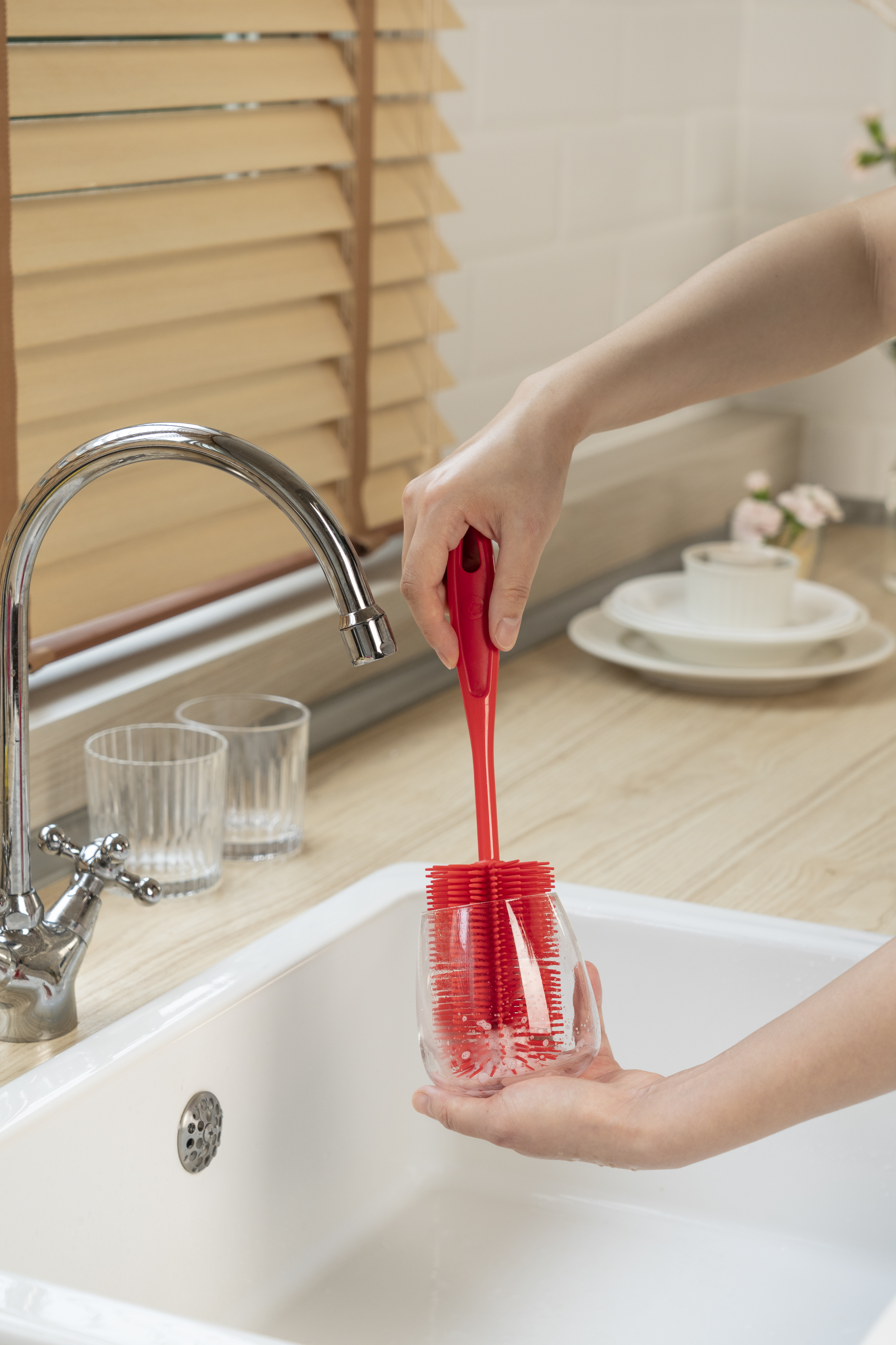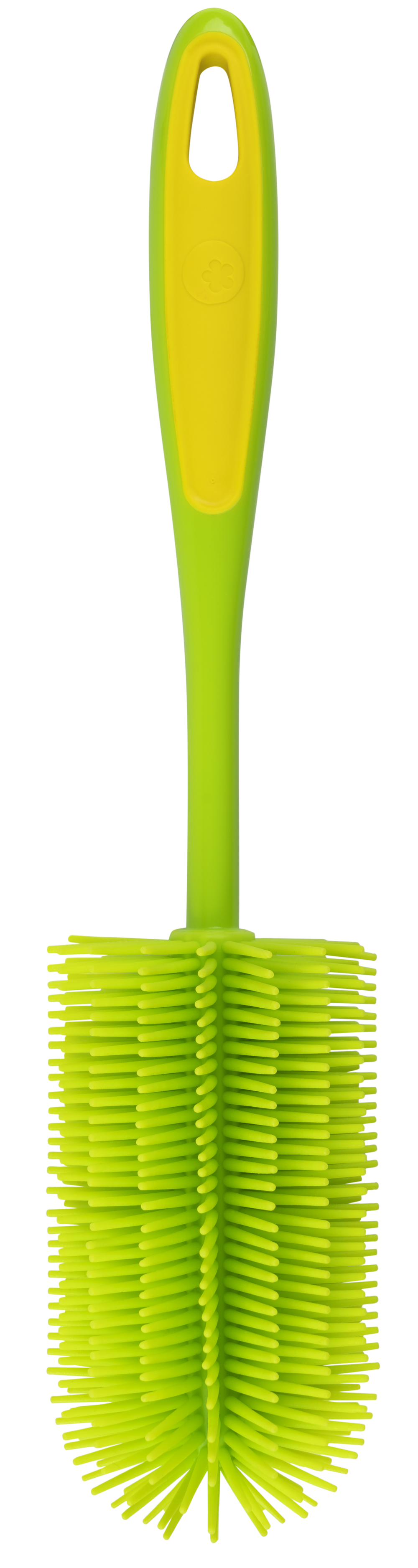 Levehető, rugalmas szilikon fej, BPA-mentes és hőálló akár 260°C-ig. Ideális edények, serpenyők, fazekak és poharak tisztítására. 29 cm hosszú, mosogatógépben mosható, cserélhető fejjel a rugalmas használathoz.